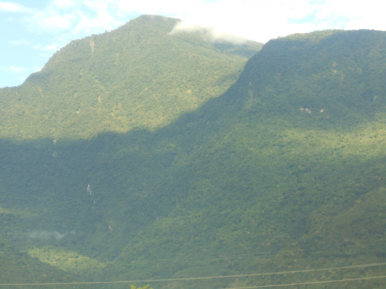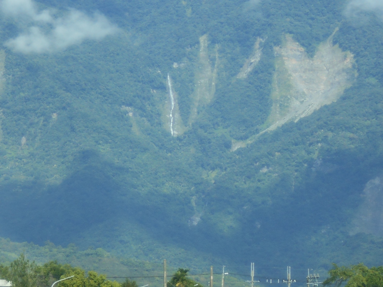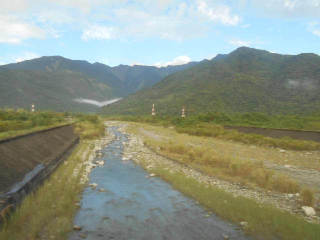 花蓮から台東への移動、バスは4時間程で、出発が遅い分、台東到着は午後になる。又、運賃が鉄道の急行(筥光号)の倍程なので、朝早い鉄道にした。特急に客が流れるのか車内はガラガラ状態で、座席も快適。景色を堪能したいな南下する場合は右側が外せない。緑の谷、乾いた河原、そして険しい山並みが延々と続き、時に瀑布を見つける事がある。