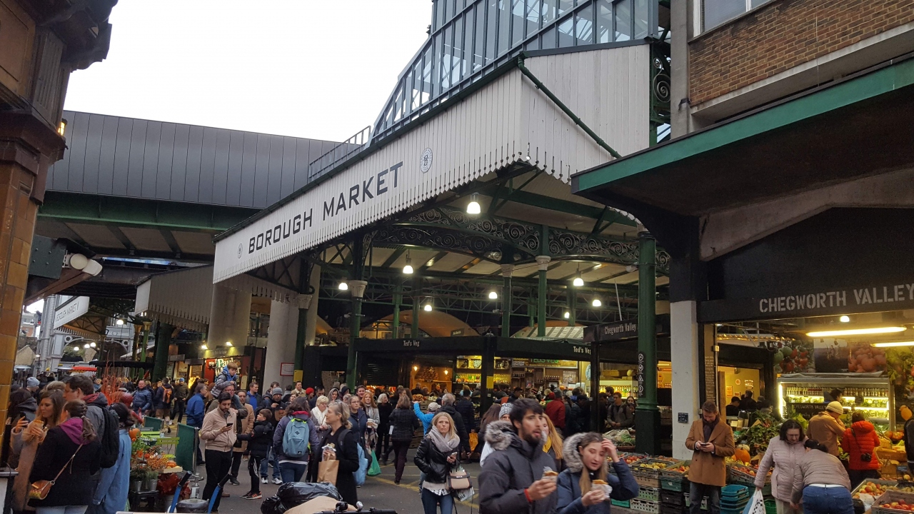 ロンドンの食材マーケット。ロンドンブリッジの南側にあります。フルーツ、野菜、飲み物、料理、なんでもあれ。バルセロナのボケリア市場を思い出した。みているだけでも楽しい。無料のトイレがあるらしいが、見当たらなかった。金額は観光客料金です。
