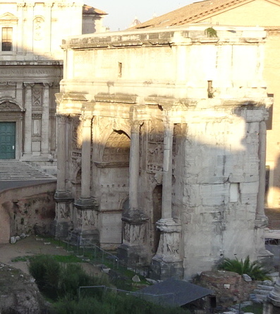 この凱旋門の北西にあるカンピドーリオの丘の展望スポットから、この凱旋門を見下ろすと、全体像もつかめるし、綺麗に見えます。