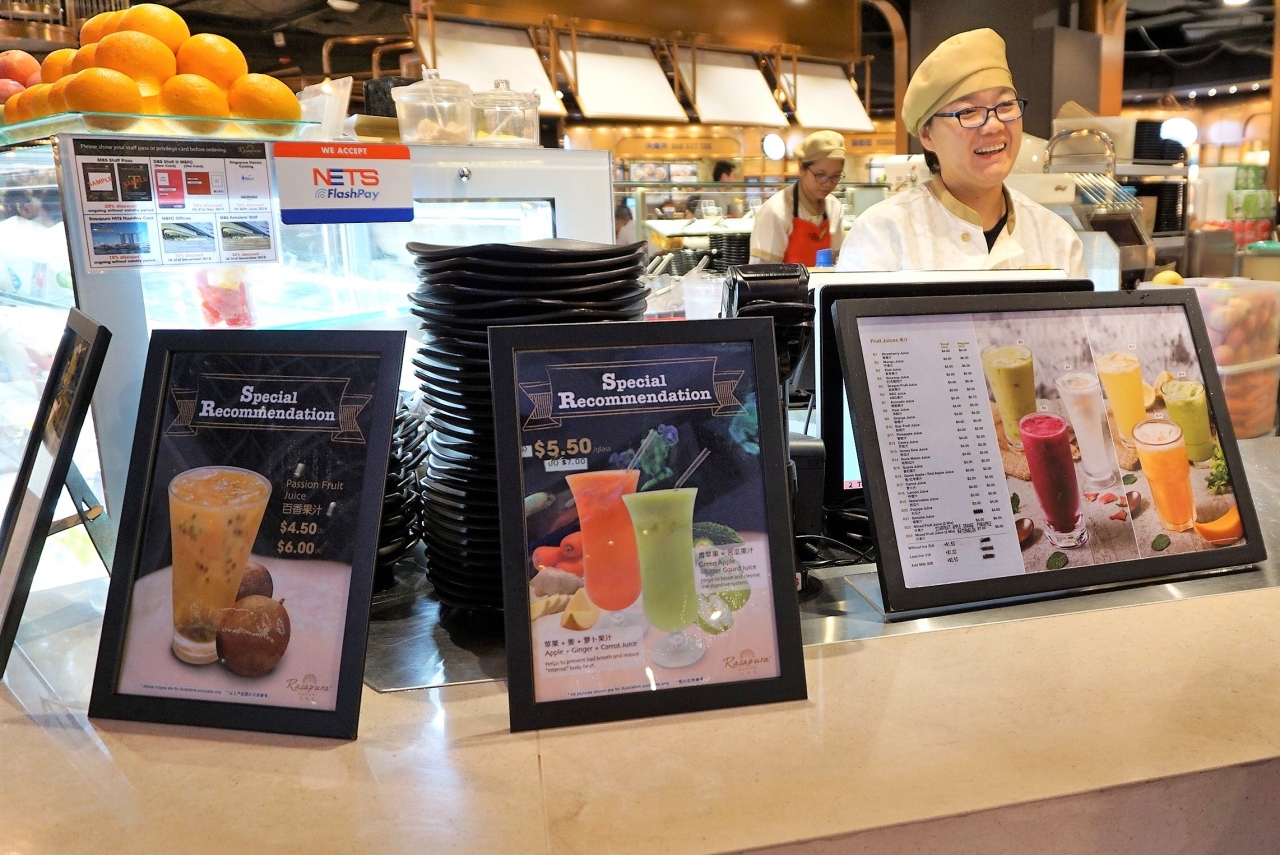 フードコートはショップスの北側の端。ショップスの長さは400mあるそうで、地下鉄の駅から結構歩くことになります。ヘリックス・ブリッジからアプローチすると、ショップス入ってすぐのチームラボの作品の真下がラサプラという位置関係です。