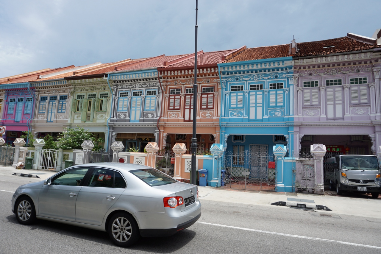 シンガポールのカトン地区にあるカラフルな建物群です。暑いシンガポールの街並みの中、パステルカラーが涼しさを誘います。カトン地区のラクサを食べに来たときには、一度は、見たい建物群です。クーン・セン・ロード沿いにあります。