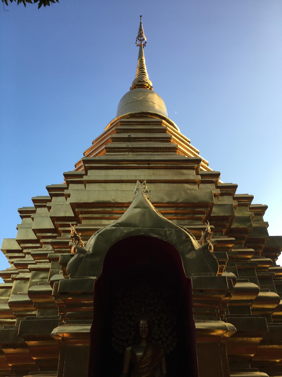 夕方のライティングでさらに仏塔は輝きを増しとても美しい。