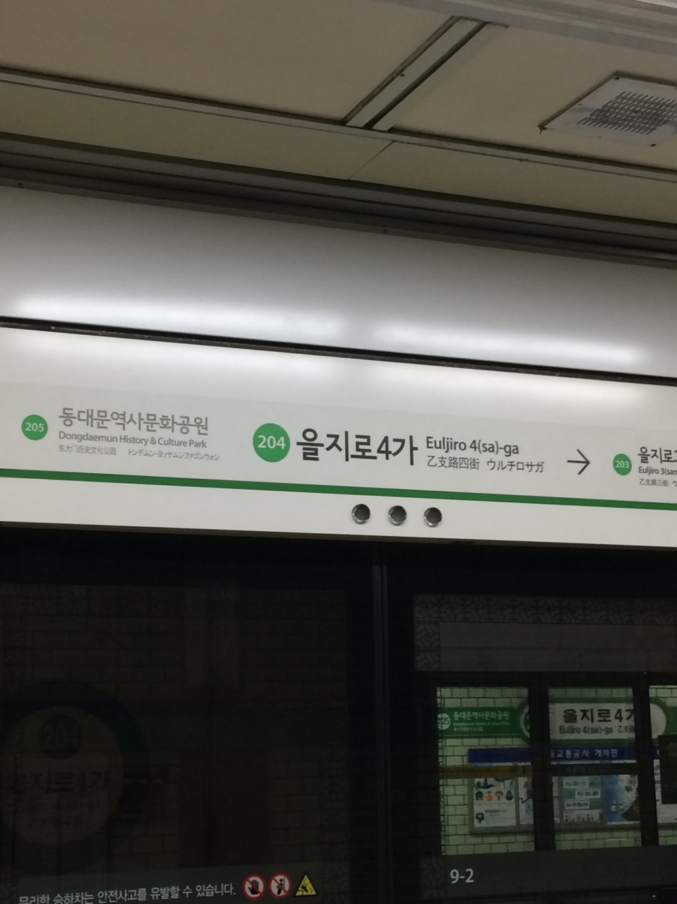 よく東大門歴史文化公園駅近くのホテルに泊まりますが、乙支路4街駅まで地下を通って歩いて行くこともあります。