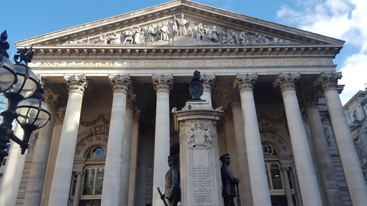 バンク駅のど真ん中にある、文字通りロンドンシティ街の中心地点。長らく証券取引所だと誤解していたが、ロンドン証券取引所はセントポール近くにありこちらはマーチャントの商いの取引場のことだ。現在は高級ブランド店、レストランなどが軒を連ねている。買い物せずとも荘厳な景色を堪能あれ。