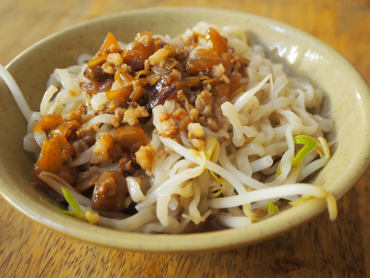 卵の練りこんであるもちもちの麺に肉やたまねぎなんかが煮込まれたようなそぼろが乗っかっている乾意麺(汁無し麺)が代表メニュー。ここに煮卵のトッピングが定番のようです。(私は卵は入れませんでしたが)