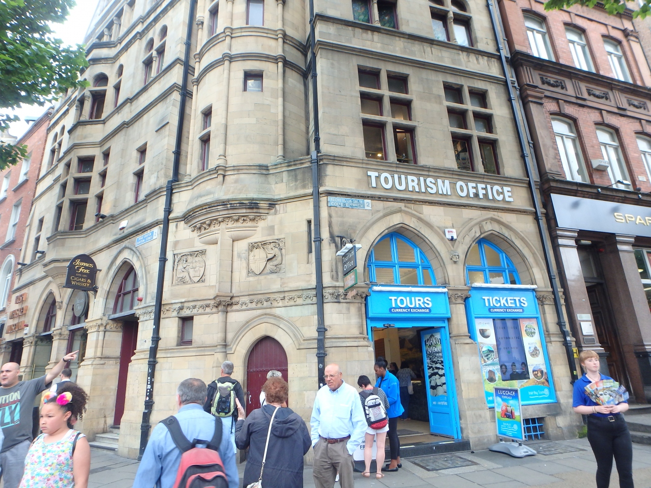 アイルランド銀行とトリニティー・カレッジの正門の向かいにある観光案内所で、訪れやすい場所にあります。市内地図やパンフレットなどが入手できるので、寄るべきだと思います。近郊だけでなくアイルランド各地へのツアーのパンフレットもあり、ここで申し込めるそうです。