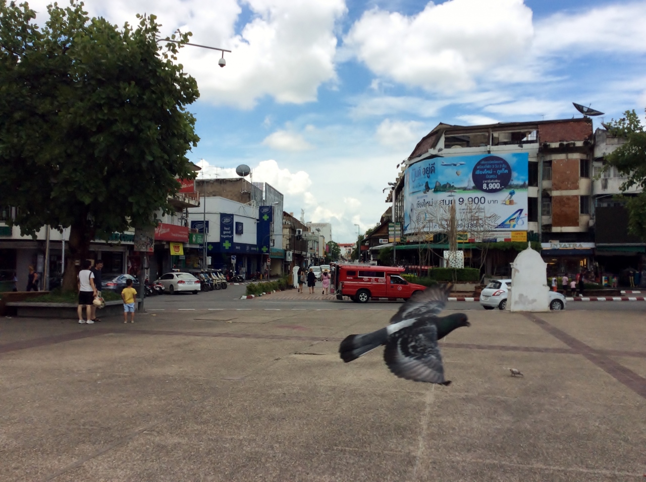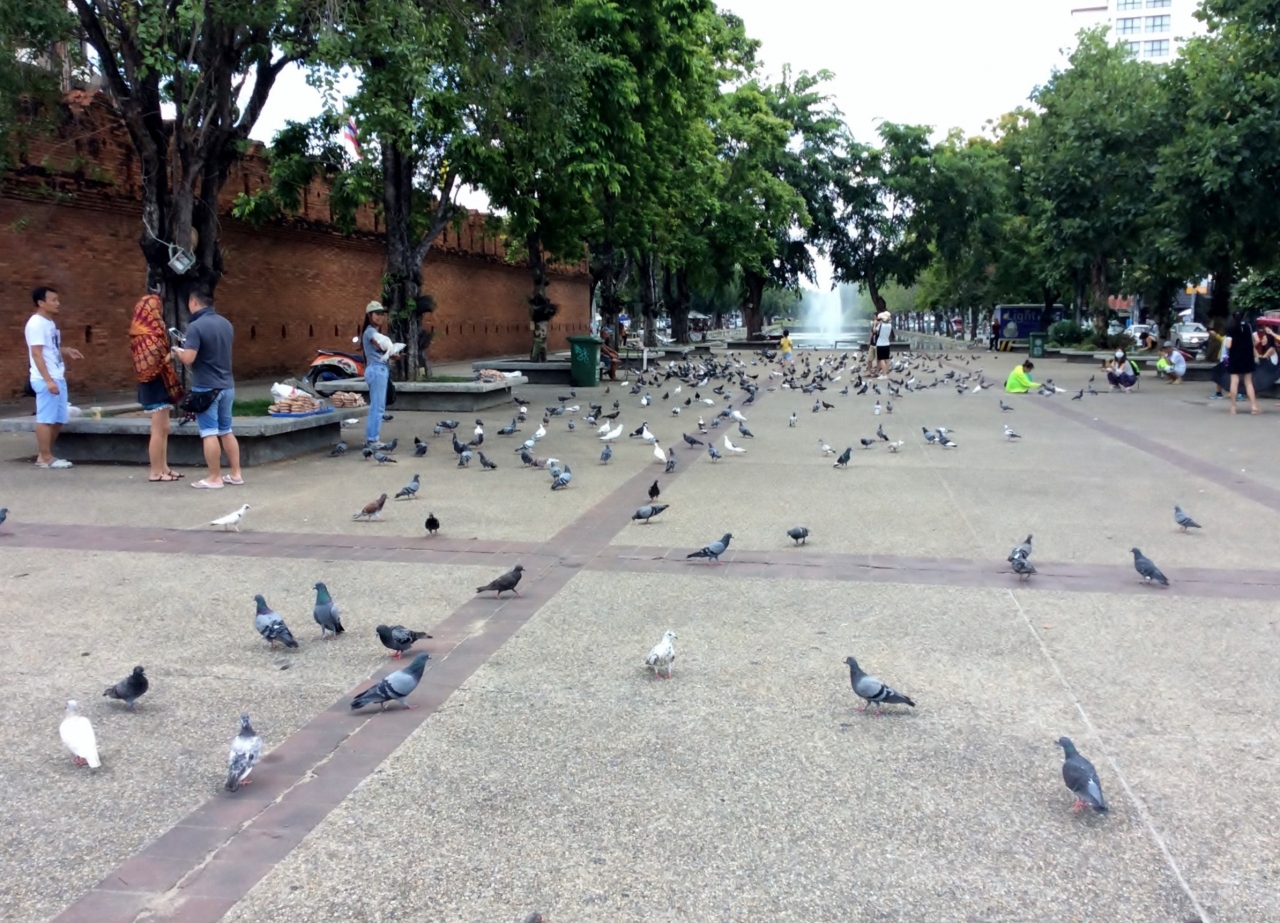 1296年にランナー王朝がチェンマイを首都とした時に築かれた門だそうです。ただし、現在の門は1986年に復元されたとのこと。赤レンガ作りの重厚な門です。この門で一番印象に残るのが鳩。人馴れした無数の鳩が蠢いています。