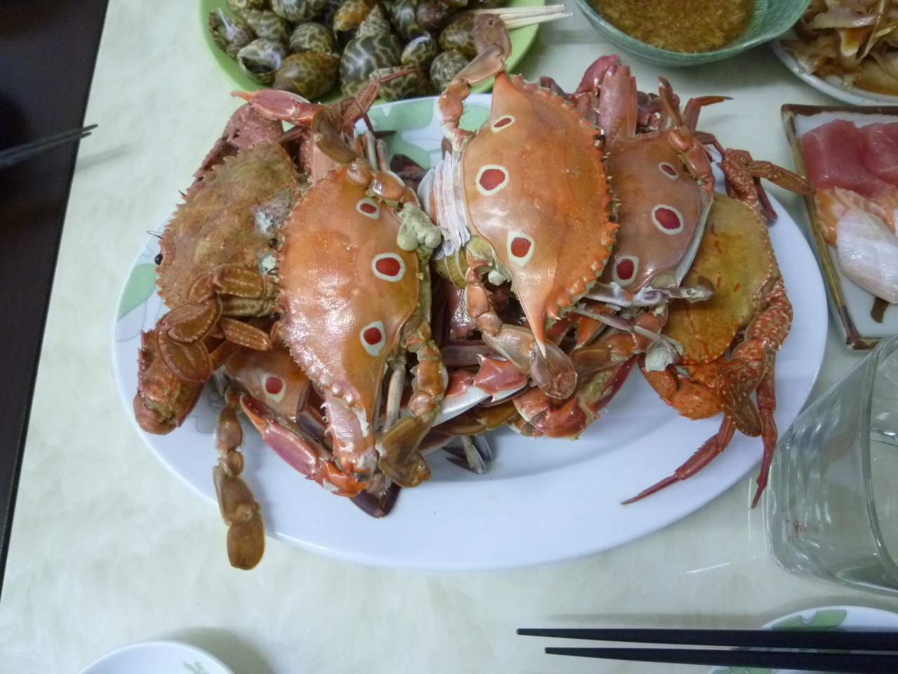 車を利用し、家族みんなで蚵仔寮漁港へ新鮮な蟹を買いに来ました。左営駅付近の自宅から10㎞、約20分で到着しました。漁港はこじんまりしていて、台湾特有の生臭さの臭いは感じませんでした。蟹を扱うお店は数件あり、ガザミの他、数種の蟹が生きたまま生簀で売られており、ガザミの他十数匹の蟹を買いました。値段を聞いてびっくり、全部で500元、本当に安い、海鮮店で食べれば、数千元はとられるはずです。土日は、倍の値段になるようなので、平日がお勧めです。以前は、購入した魚介類を調理をしてくれるお店が併設されていましたが、今は無く、観光客の方々には、利用し難いかもしれません。ただ、そばに新しい建物が建設中でしたので、調理店や料理店ができると思われます。その節は、観光客の方々にも利用できるのではないかと思われます。蟹の他、新鮮な魚介類、野菜数種を購入して全部で2000元位でした。近所の安いと言われる市場でも、こんな値段では買えません。早速、家へ戻り、新鮮な蟹を十分に堪能することができました。