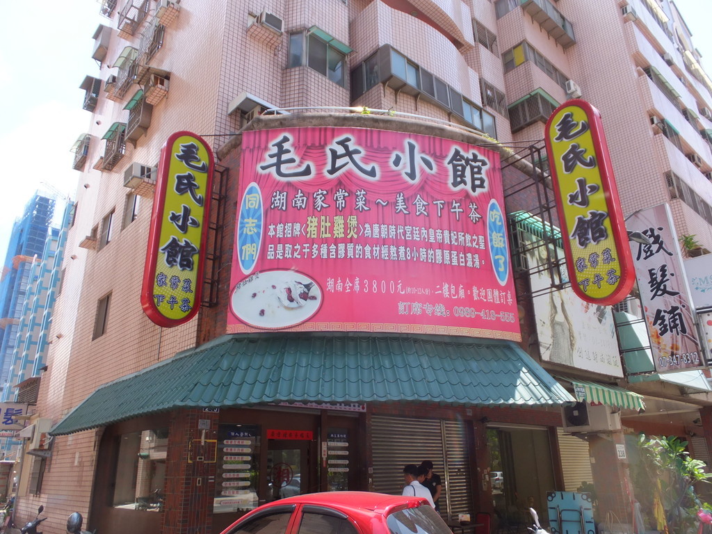 捷運生態園区站を出て、博愛二路を渡り、少し北上して最初の角を右折すると毛氏小館があります。ここでは、毛沢東の故郷「湖南省」の料理を出してくれます。私のお気に入りは、ピリ辛味の剁椒炒飯(75元)で、行けば必ず注文します。食べたら、癖になる味です。蓮池潭も近いですから、観光の後で寄られてみたらいかがでしょうか。店長は、長く日本で生活していたので日本語は堪能です。