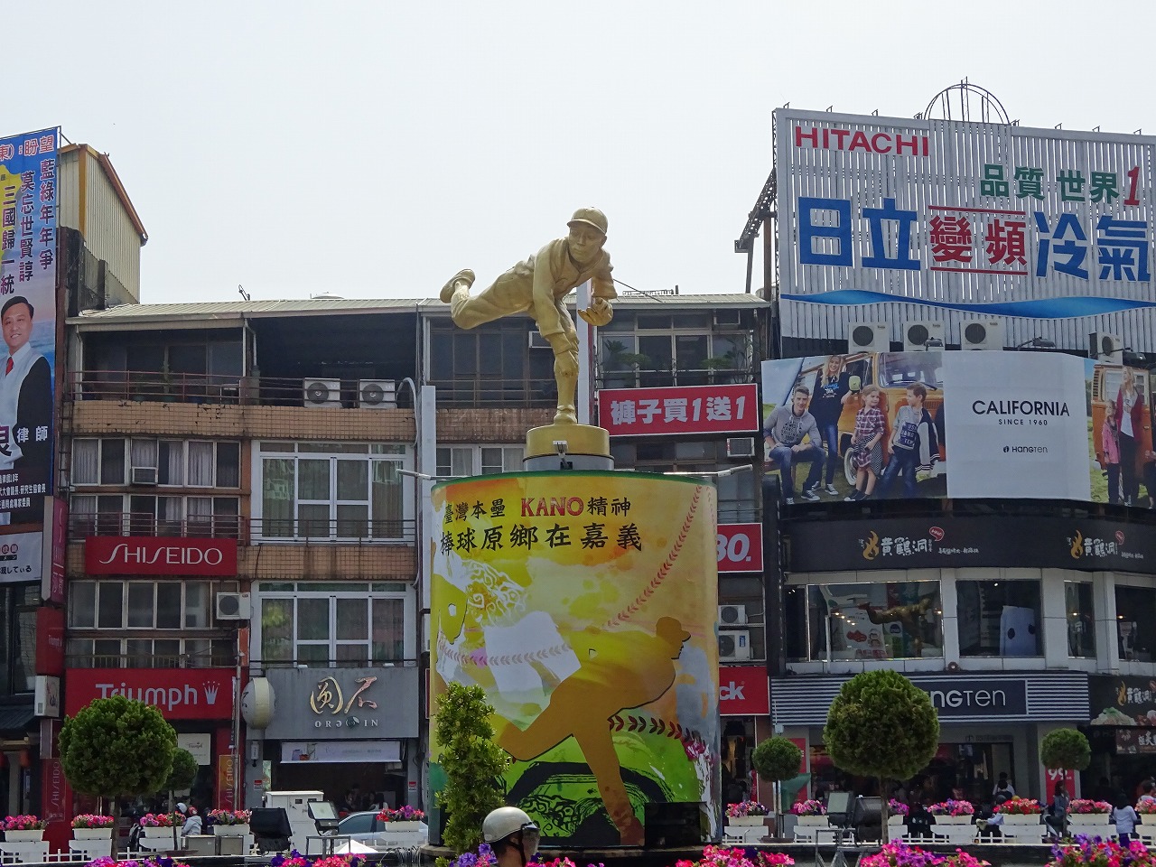嘉儀といえば、日本統治時代に、甲子園で準優勝した嘉義農林が知られていますが、このロータリーの中央には、当時活躍した嘉義農林の呉明捷投手の像が建っています。