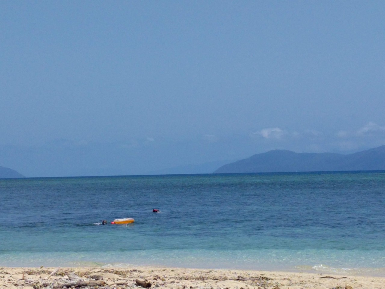 海岸線からは泳いでポスターの様なシュノーケリングは出来ません。砂浜の先には珊瑚では無く藻が生えていました。それでも水は透き通っていてとても綺麗で、足の着く水深でも大きな魚を見る事が出来たしエイだっていました。