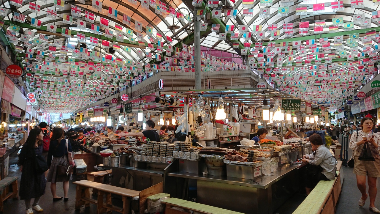 久しぶりに広蔵市場に緑豆チヂミを食べに行きました。