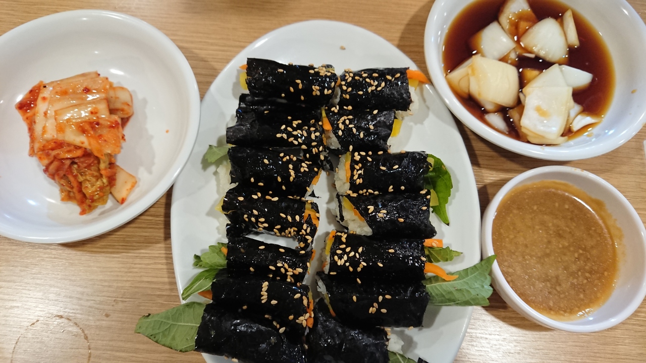 朝ごはんに、緑豆チヂミとキンパッを食べました。