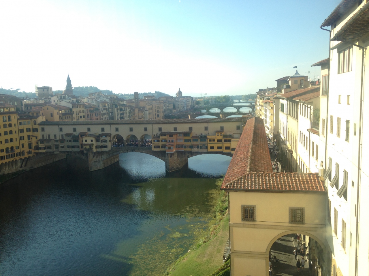 ウッフィツィ美術館からも見えるアルレ川に架かる橋ですが、橋には宝石店が彫刻細工のお店が連なっていて、歩いていると普通の通りとかわりません。特別買うものもありませんでしたが、観光ついでに行くのもよいです。