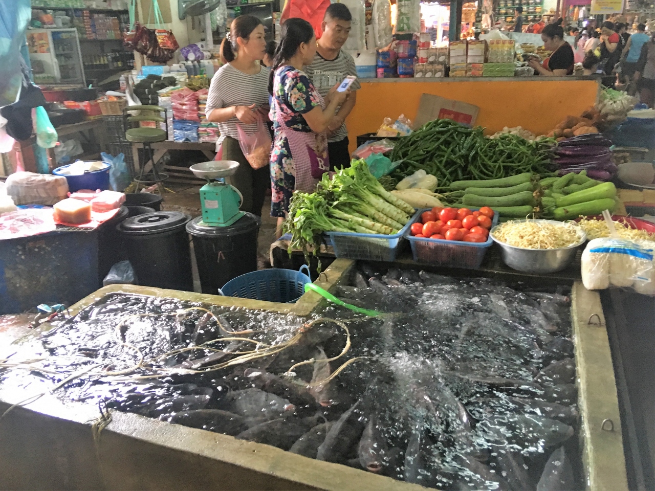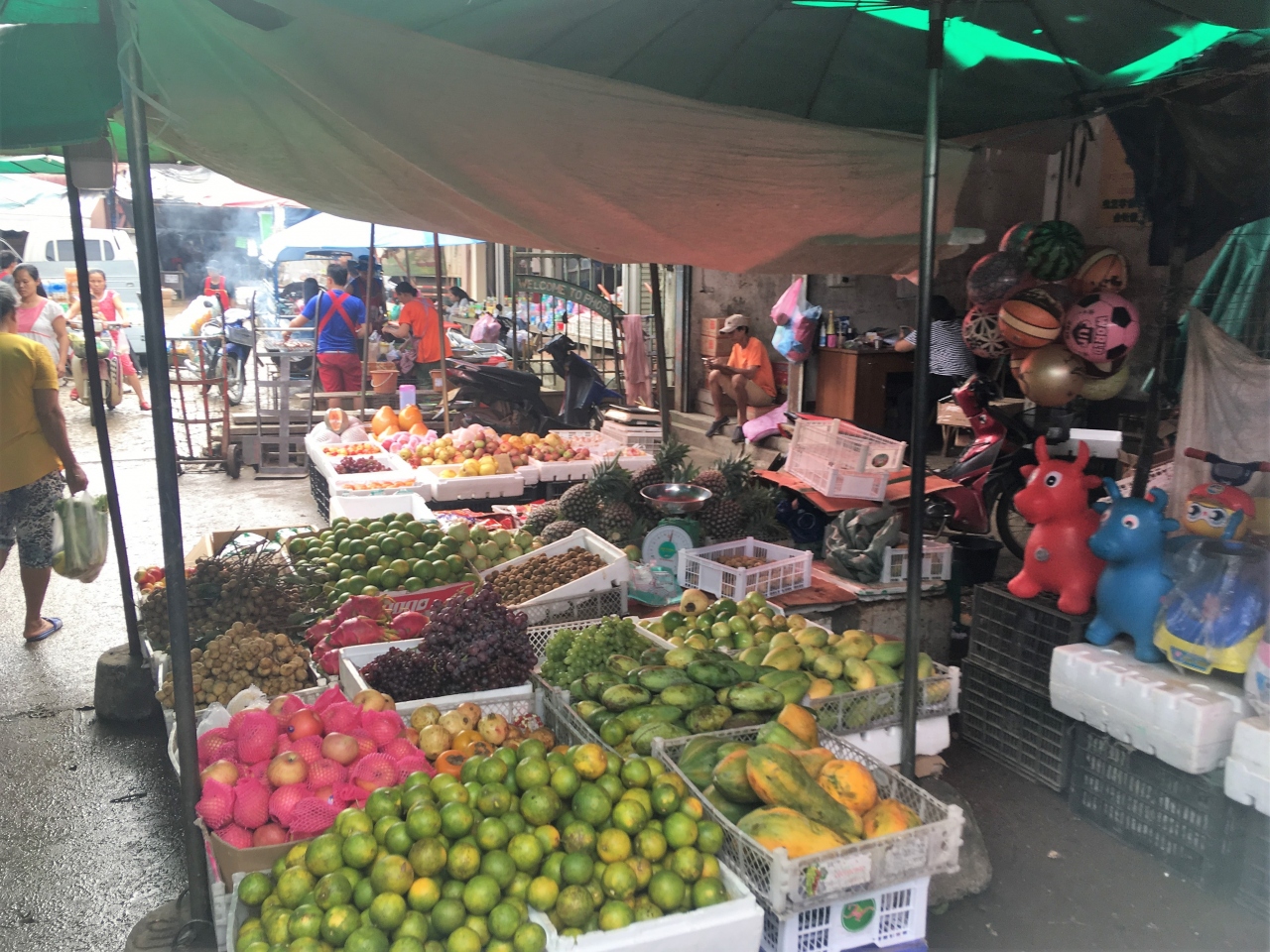 どこにでもあるような市場ですが、果物・野菜・肉・魚・米・香辛料・雑貨など色々なものが売られています。