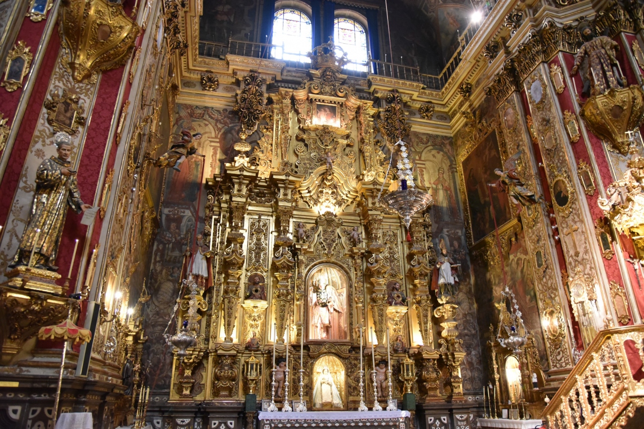 ・ここの教会内部の黄金色で手の込んだ祭壇と装飾は見たときに驚きと強いインパクトがある