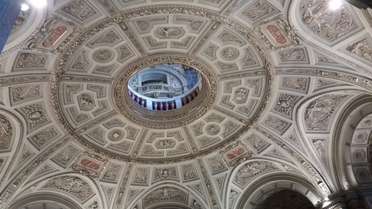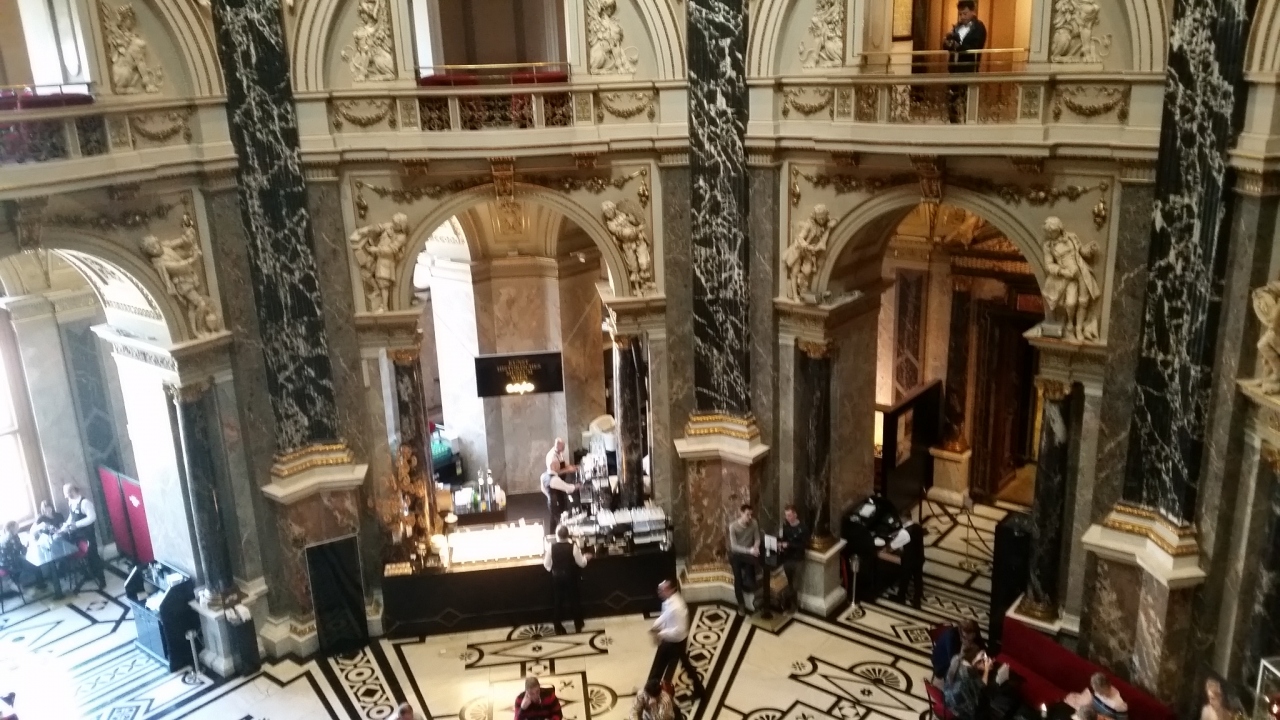 ツアーの自由時間に訪問しました。今回は美術館の鑑賞というより、ここに来てみたかったというのが正直なところです。日曜のお昼なので混んでいましたが、同じツアーの方と相席で、サンドイッチと紅茶を。上からの眺めると、床から、壁から、天井までどこも美しかったです。