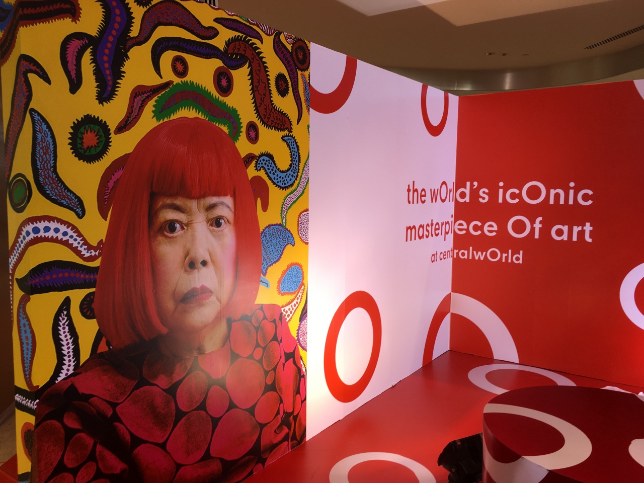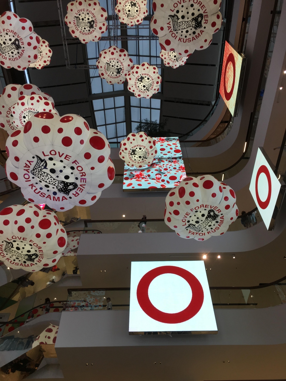 今回は今中国で今問題になっている草間さんのデザインのモニュメントやイメージが飾られており、日本人としてはその人気に感激いたしました。