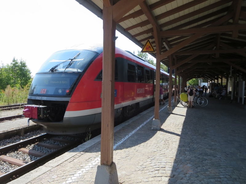ミュンヘンからトロイヒトリンゲン、シュタイナッハで2回乗り継いでドイツ鉄道でローテンブルクまで来ました。シュタイナッハの乗り換えは分かりやすかったです。日本だと地方の支線は古い車両が多いですが、ドイツの鉄道はどこで乗ってもきれいな車両でした。