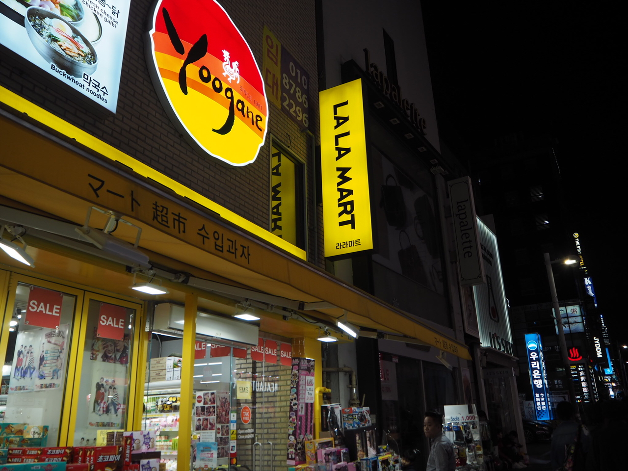 明洞にあるララマートを訪れました。韓国のお菓子や調味料、インスタント麺などさまざまなものがまとめ買いできます。人気スポットなのか日本人で賑わっていました。わたしは、韓国のりや、韓国鍋の素、韓国ではやっている汁なしインスタント麺を購入しました。持ち帰り用のビニール袋は有料なので注意。手頃な価格のお菓子をまとめて買うことができるので、バラマキお土産に便利だなと思います!