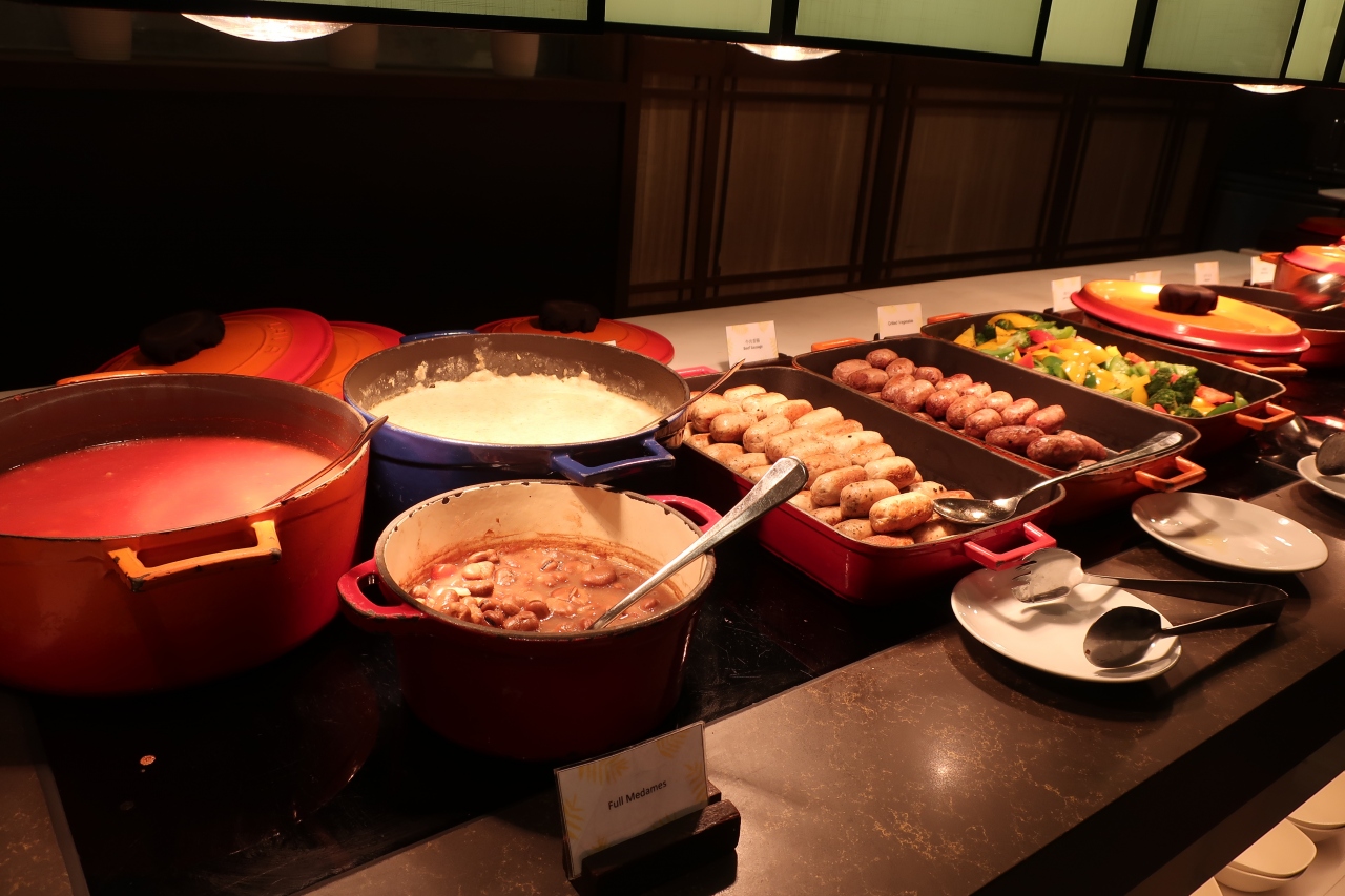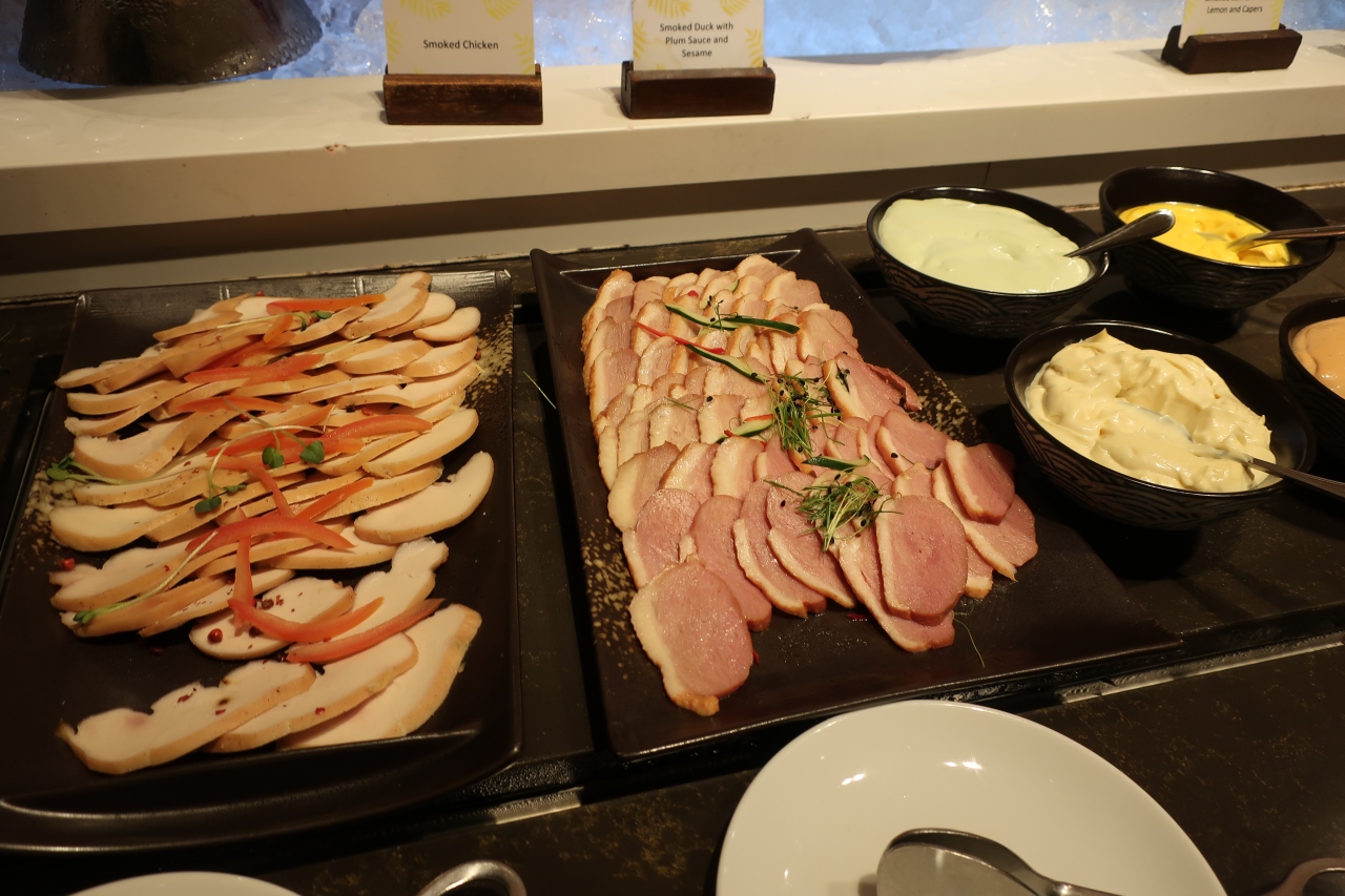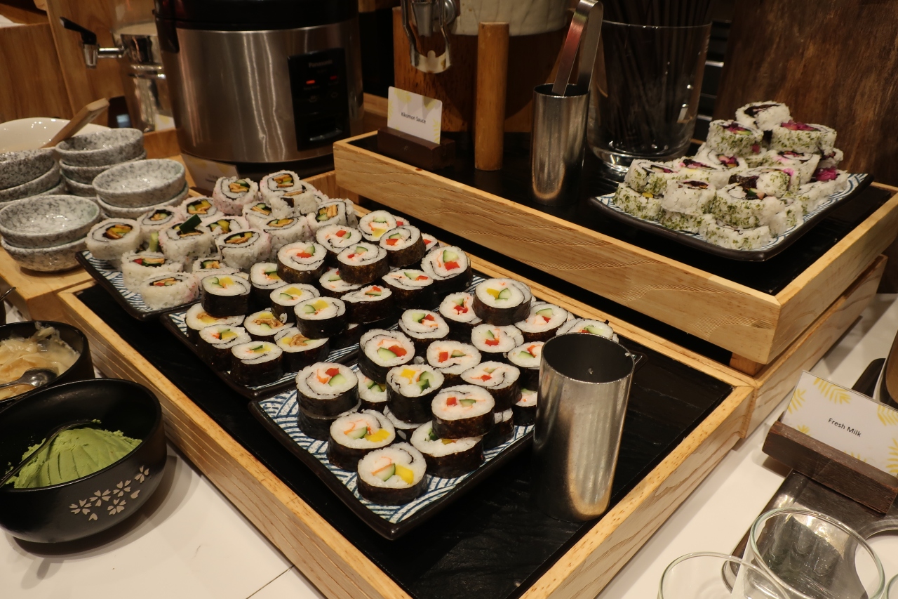 朝食で利用しました。シャングリ・ラホテルに宿泊するたびに利用します。種類は豊富で、ローカルフードはもちろん、西洋、和食、中華、インド料理などがあります。ただ、豚肉料理はありません。今回の利用で、「ペーパーチキン」をいただきました。スパイスが効いてきて、はっきりした味付けですが、非常においしくいただきました。また、デザートでは、アイスクリームコーナーもあり、朝から楽しめました。