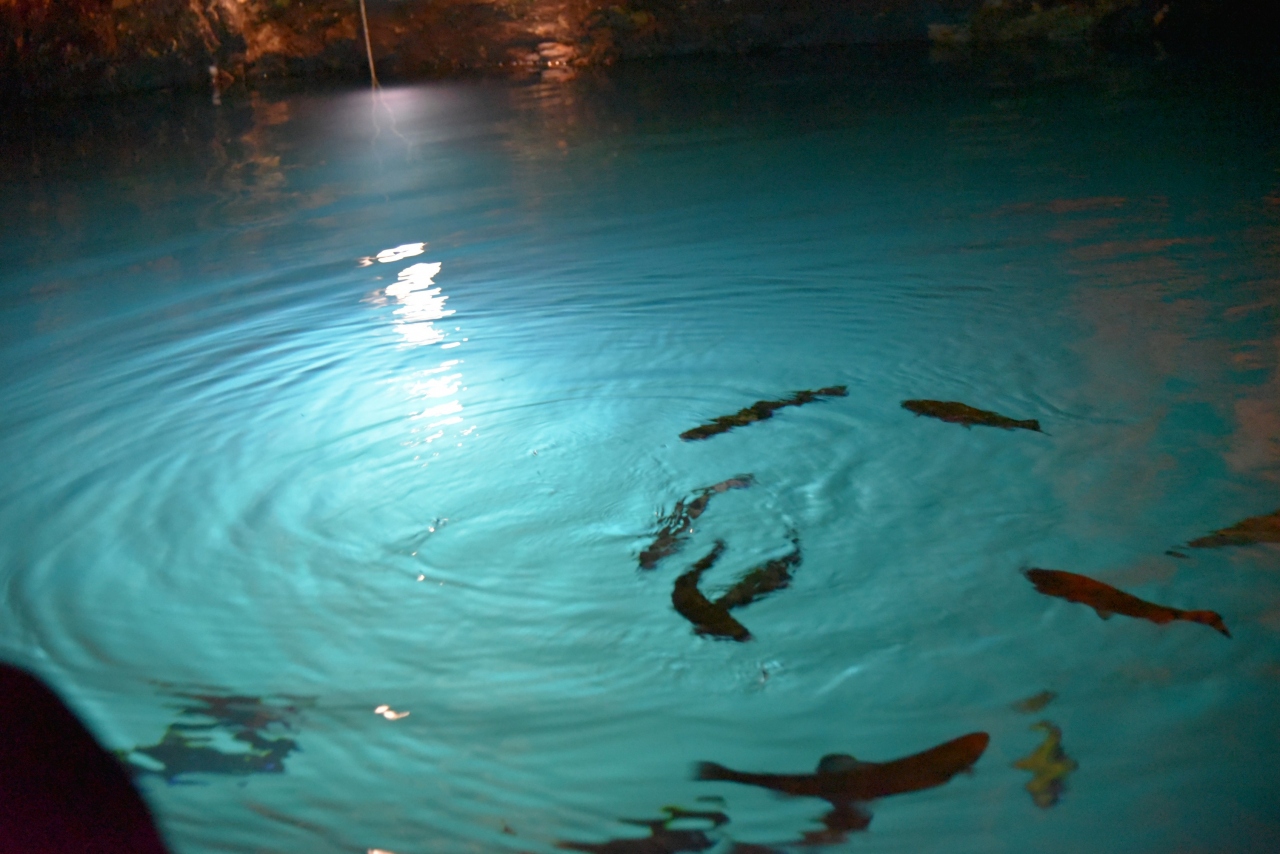 ・サン・レオナ-ル地底湖には鱒(マス)がいて餌をまくと近寄ってくる。
