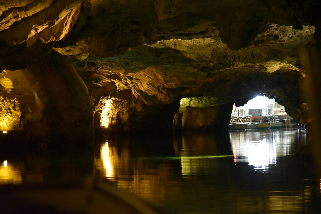 ・青の洞窟内はどこでもきれいなサファイアブル-だがサン・レオナ-ル地底湖は船で奥に行った付近だけタ-コイズ ブル-。