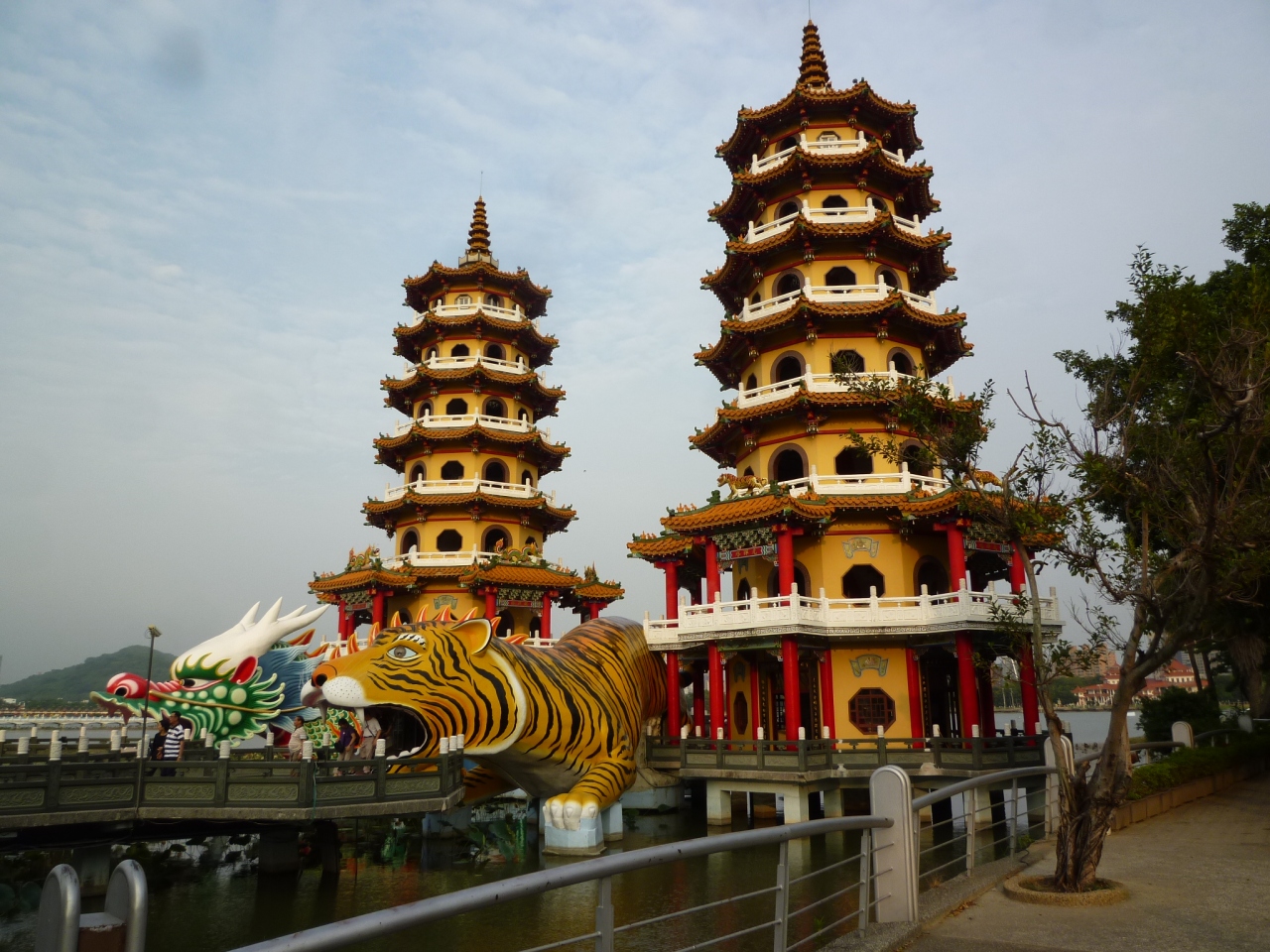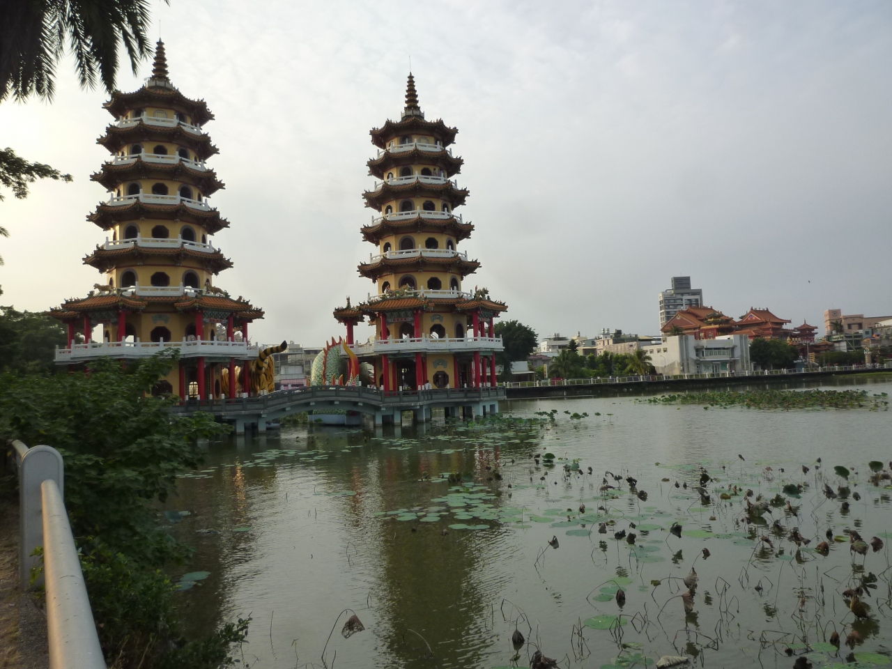 蓮池潭は我々夫婦の散歩コースの一つで週数回訪れており、龍虎塔に毎回来る度に、四季折々に色々な光景を見ると、いつもいいなと思います。また、日本から、高雄へ戻り、この塔を見ると高雄に戻って来たなと実感します。龍虎塔は蓮池潭観光では代表的なところで、龍の口から入り虎の口から出るのがよいとされていますが、台中にあった龍と虎の塔は逆であったように思いました。また、龍塔、虎塔の両方を登る人は少ないと思われますが、体力に自信のある方は、是非上ってみてください。違う光景が見ることができます。私は今まで二回程登りましたが、私の友人たちは、もう十分と拒否されてしまいました。
