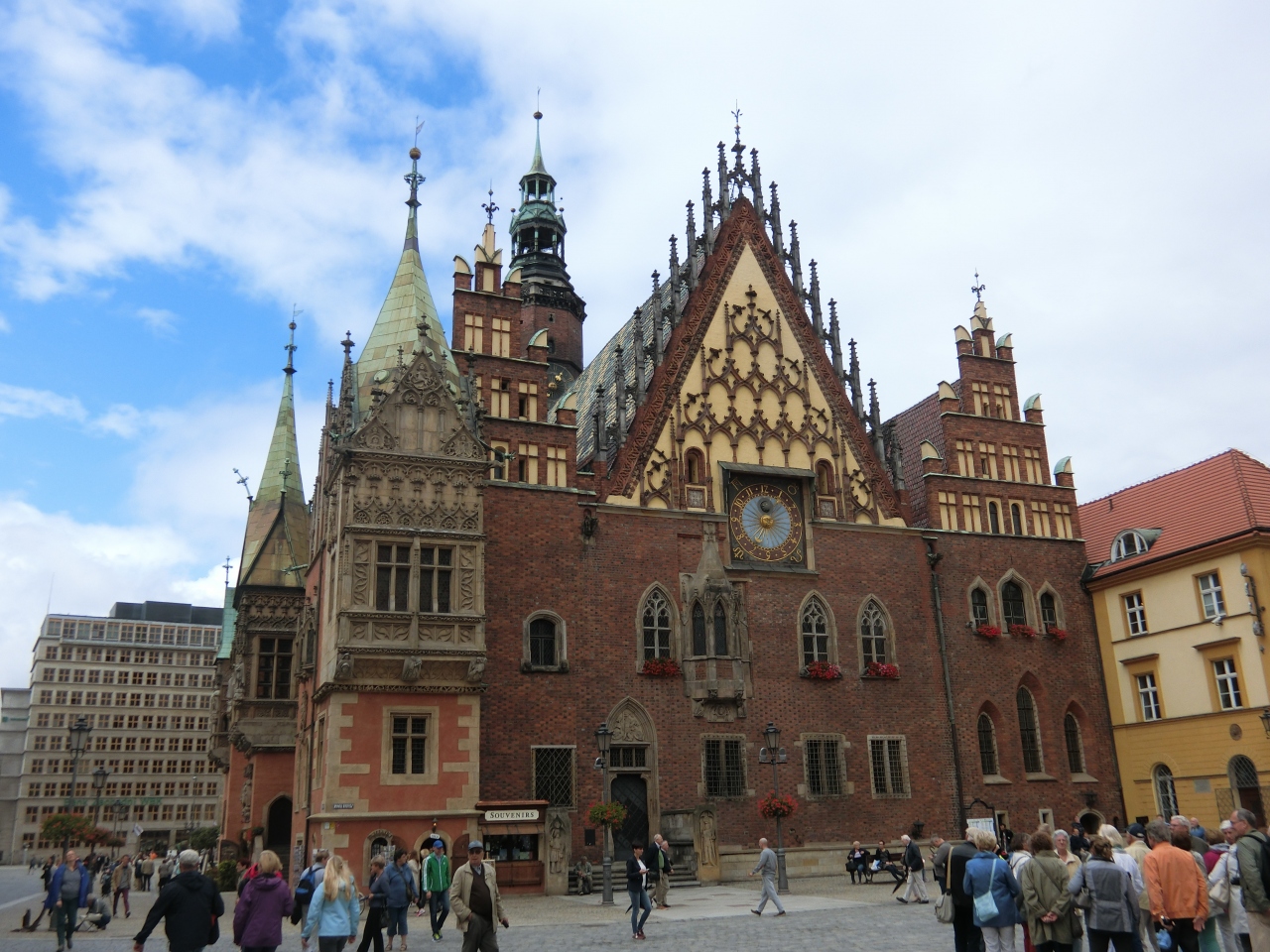 旧市街広場にある市庁舎は目を引くかわいい建物です。ゴシック様式の建物で屋根に特徴があり、細かい装飾と、レンガ色とクリーム色の色合いもいい。窓には赤い花が飾られ、まるでおとぎの国に出てきそうな建物です。何度も見に行ってしまいました。