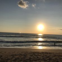 夕暮れ時を散歩、夕陽がとても素敵でした。同じように散歩してるカップルや家族連れ、犬の散歩してる人、サーファーたち、ボール遊びの子供たち。人はいますがビーチが広いためゆったりした気持ちで楽しめました。クタ滞在中毎日見に行きました(^-^)