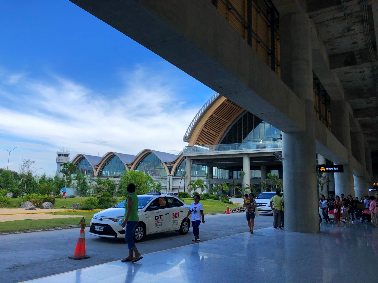 今夏に新しくなったばかりだそうで、とてもきれいです。大きさはそれほど大きくはないので、迷うことも時間がかかることもありません。(時間帯によってはもしかしたら混むのかもしれませんが)。どこの空港でもそうですが街中で売っているのと同じ商品が空港では割高で、特にフィリピンは物価が安いので余計に空港での買い物は割高感が強いです。お勧めしません。店員さんやスタッフさんの感じはとても良いのですが。空港からは黄色いタクシーと白いタクシーがあり、他はホテルのお迎えバスが少し。公共のバスもあるのかもしれませんが、よくわかりませんでした。