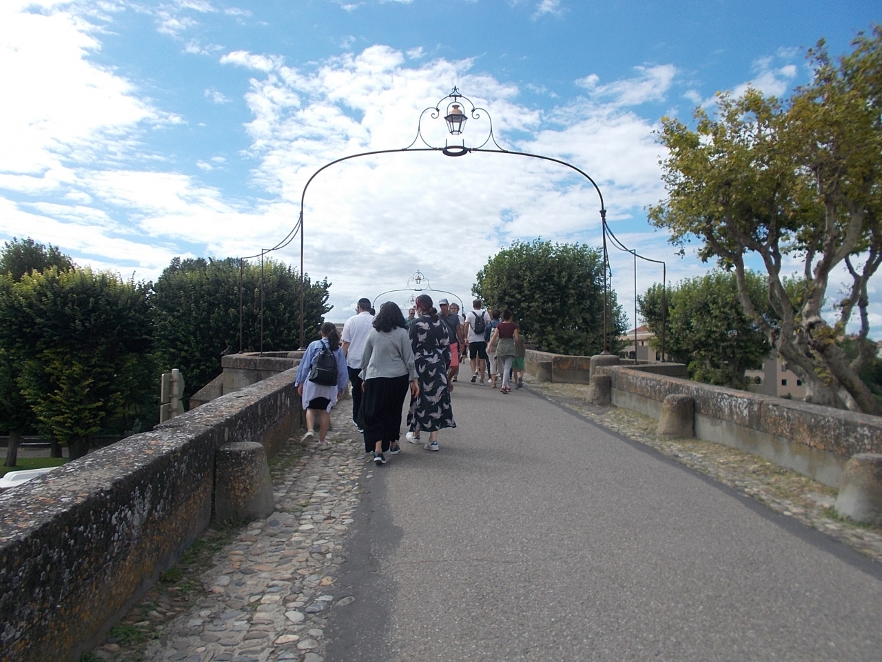 この古い橋は「シテ」と「城外」との間を流れるオード川にかかる橋です。この古い橋はローマ時代に作られた橋です。橋は今でも使われています。さらに「シテ」であるカルカソンヌ城塞都市に行くためのルートになっています。多くの人がこの橋を行き来しています。