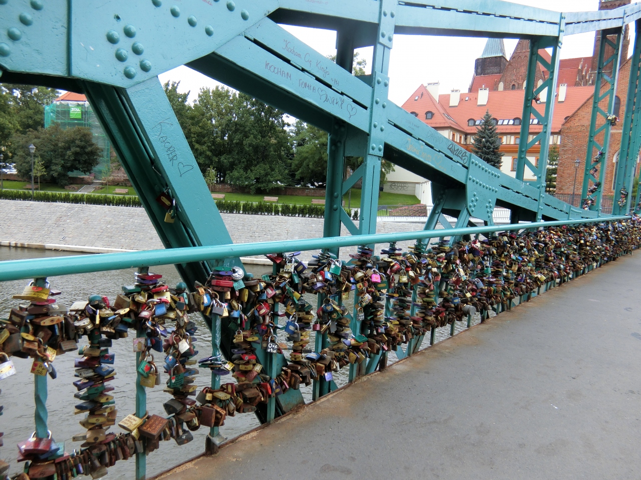 旧市街地からオストルフ・トウムスキ地区にある洗礼者ヨハネ大聖堂行くときに通る橋です。ブルーの色をした鉄橋です。この橋にはたくさんの南京錠がかけてあり、愛の橋とも呼ばれています。恋人たちがみんなここにかけていくのですね。近くには鍵を売っている屋台がありました。