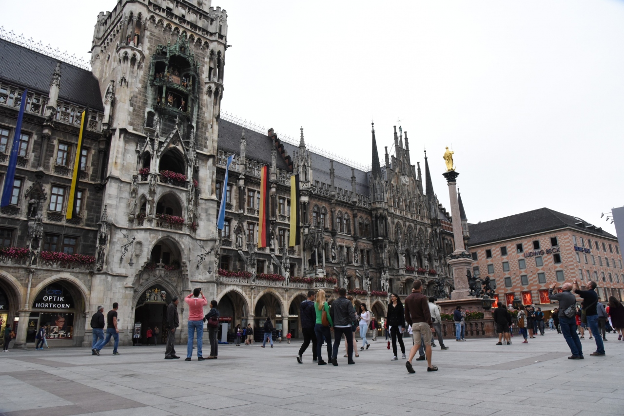 ・広場に集まる人のお目当てはドイツ最大の仕掛け時計、「グロッケンシュピール(Glockenspiel)」です。このグロッケンシュピールは、聖金曜日と諸聖人の日を除く毎日11時、12時からの約10分間、32体の人形の踊りや演奏をします。
