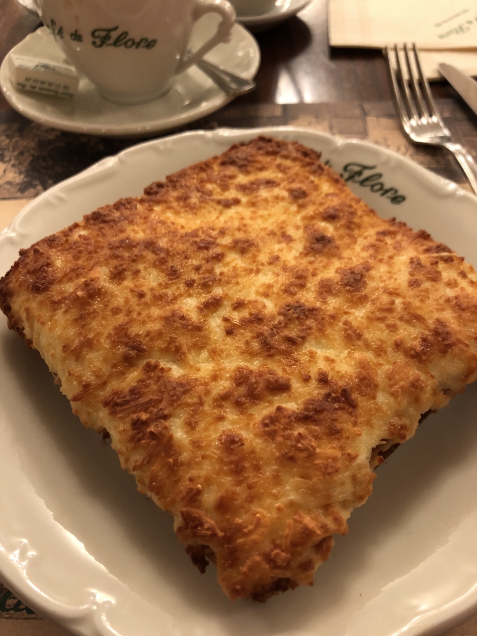 一度くらいはカフェで朝食を食べたいと、ホテルの朝食を放棄してここに来ました。ブログでクロックムッシュが美味しいと書いていたので注文したところ、とてもボリュームがあり、40代男性では何とか食べることができたというところ。これに、パン2つとカフェオーレで約3000円しました。けど、味と雰囲気は満点です。