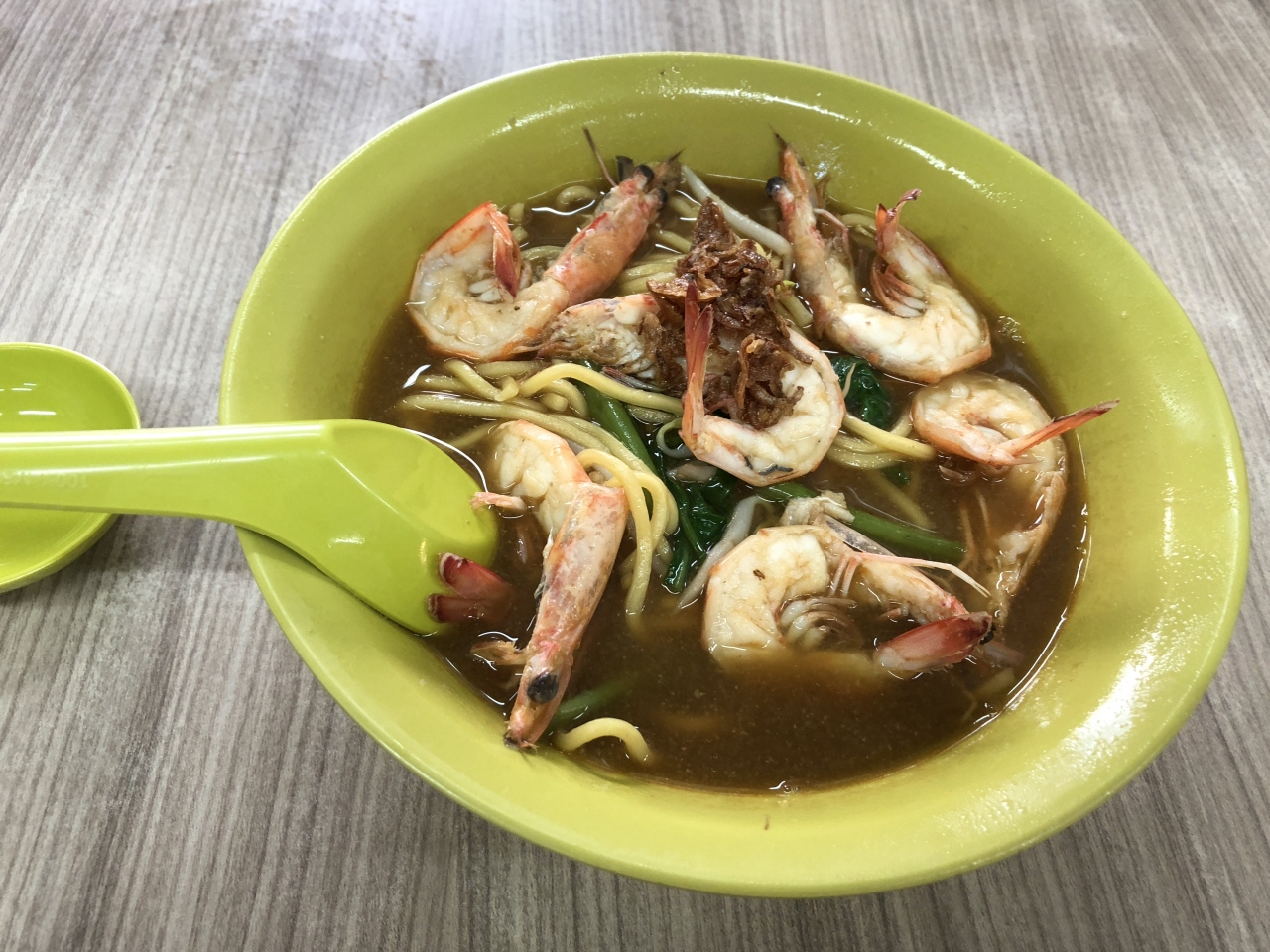 席は相席もOKなようです、1人だったので前の席に現地の人が座り料理が出てくるまで話しながら待っていました。料理が来るのが遅いです。シンガポールのグルメサイトで見て美味しそうと思い行ったのですが写真の様に美味しそうな見た目ではなかったですが食べたら海老の味が濃厚で美味しかったです。