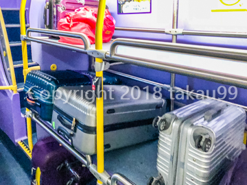 香港国際空港から宿泊予定のホテルへ移動する際に空港バスを利用しました。たまたまホテルの近くまで乗り換えなしで行けるバス路線があったので使ってみることにした次第です。社内には大きな荷物置き場もあって便利だと思います。