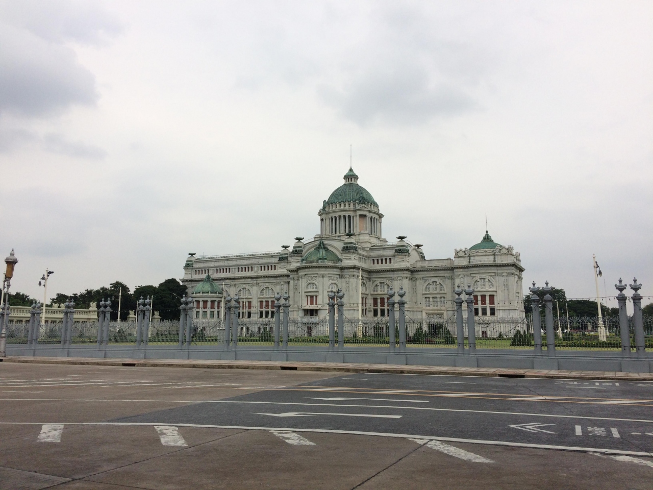 大通りから真っ直ぐ延びる道、その正面にヨーロッパ調の宮殿のような大きな白い建物があり、それが以前国会議事堂として使われていた建物です。あまりにも豪華すぎる造りなのは1907年に迎賓館として使用されるために建設された経緯があります。周囲には正装で小銃を持った警備兵が配置されており、ピリピリとした雰囲気。当時のタイはアジアの発展途上国であったのに、対外的に虚勢を張らないと生き残れないとても厳しい国際情勢であったのか、・・・と想像すると感慨深いです。