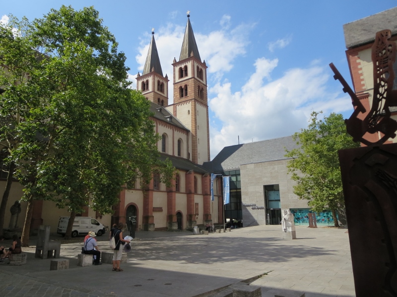 第2次世界大戦で破壊されて再建されたので、きれいな大聖堂でした。教会と近代的な資料館のような建物が一体化していて、中を通り抜けてアルテマイン橋に続く通りに出ました。急いでいたので、大聖堂の中のリーメンシュナイダー作のシェーレンベルク大司教の像を見逃したのは残念です。