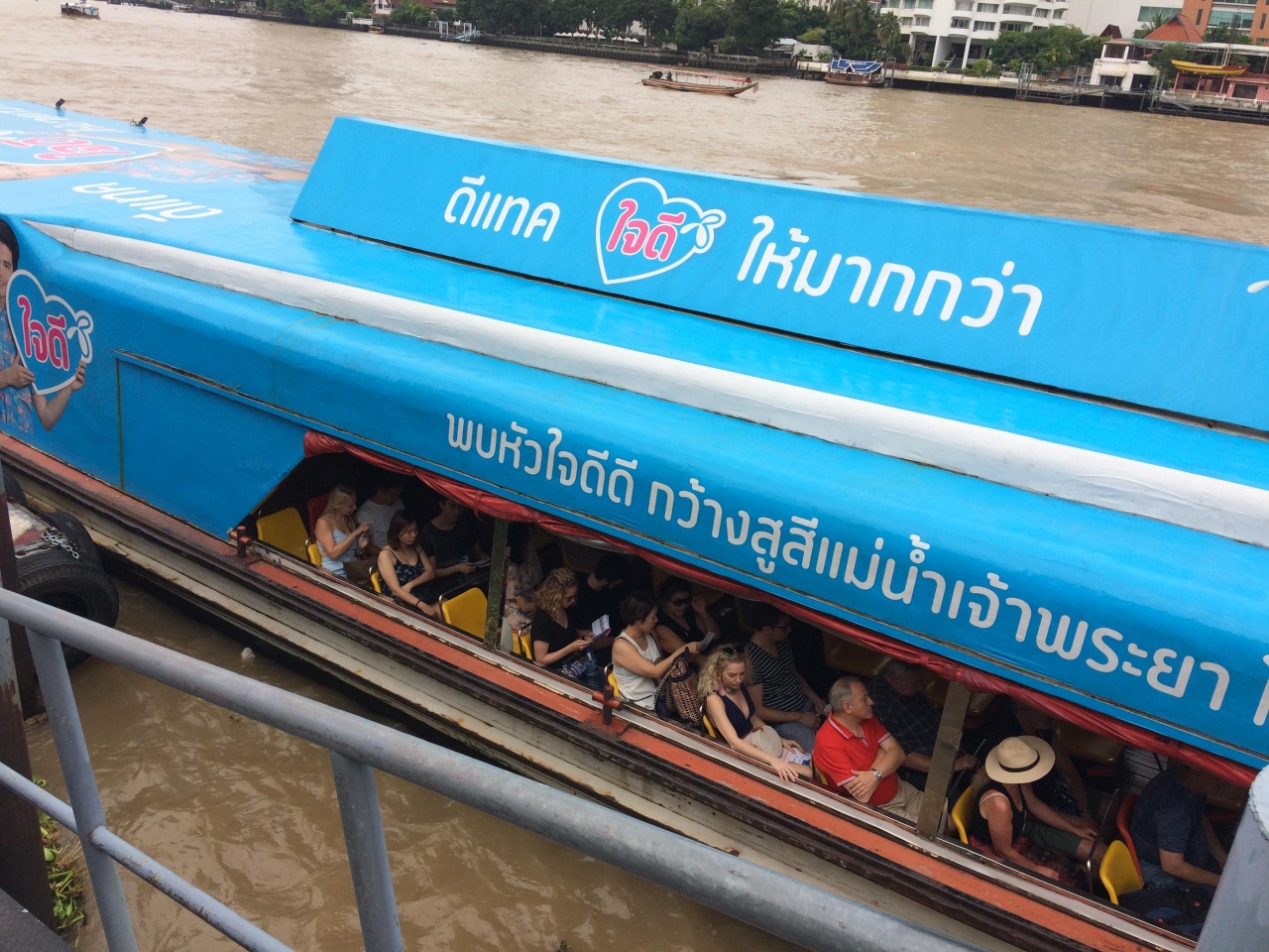 サトーン船着場からワットプラケオの近くのターチャン船着場まで利用しました。次のボートのチケットを購入したら割高のツーリストボートだったようで、一人50Bの費用となりました。乗客が日本人を含む身なりのよさそうな外国人の観光客ばかりで、ゆったりと安心してして川上りを楽しめました。一般の15Bに比べて35B高いですが、スリなども含めより安全で快適なボートトリップのため、おおよそ100円を支払うのは決して高くはないと思います。