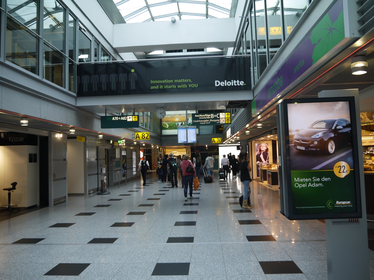 空港内は綺麗で、規模はフランクフルトやミュンヘンに比べてコンパクトです。