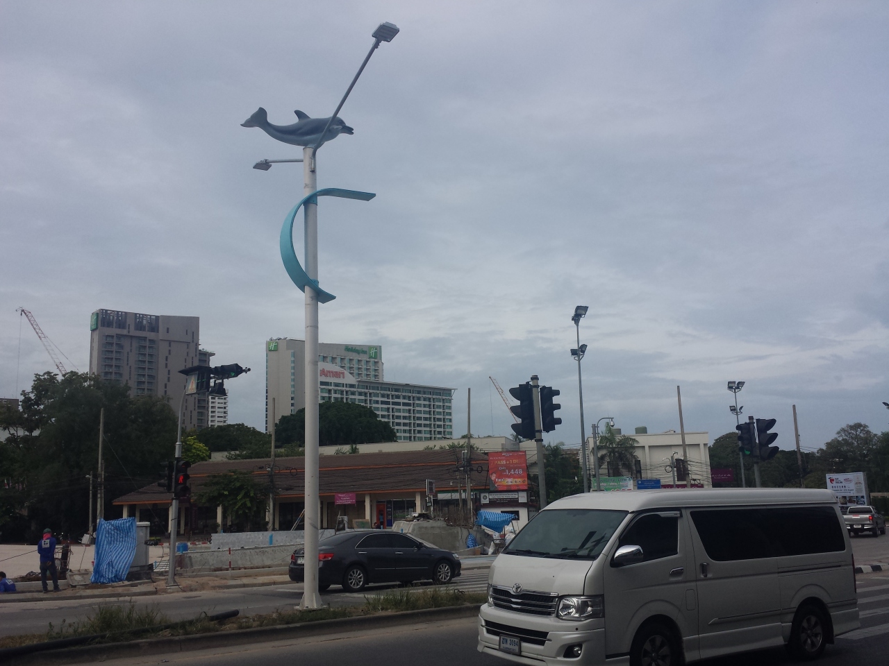 ビーチロードを周回するするソンテウと北バスターミナルへ向かうソンテウの乗り換え地点となる場所ですか。ドルフィンのモニュメントと噴水があるロータリーで周辺では一番目立つランドマークでもあります。しかし周辺には最近ターミナル21が出来たので、そちらがランドマークになるかも。