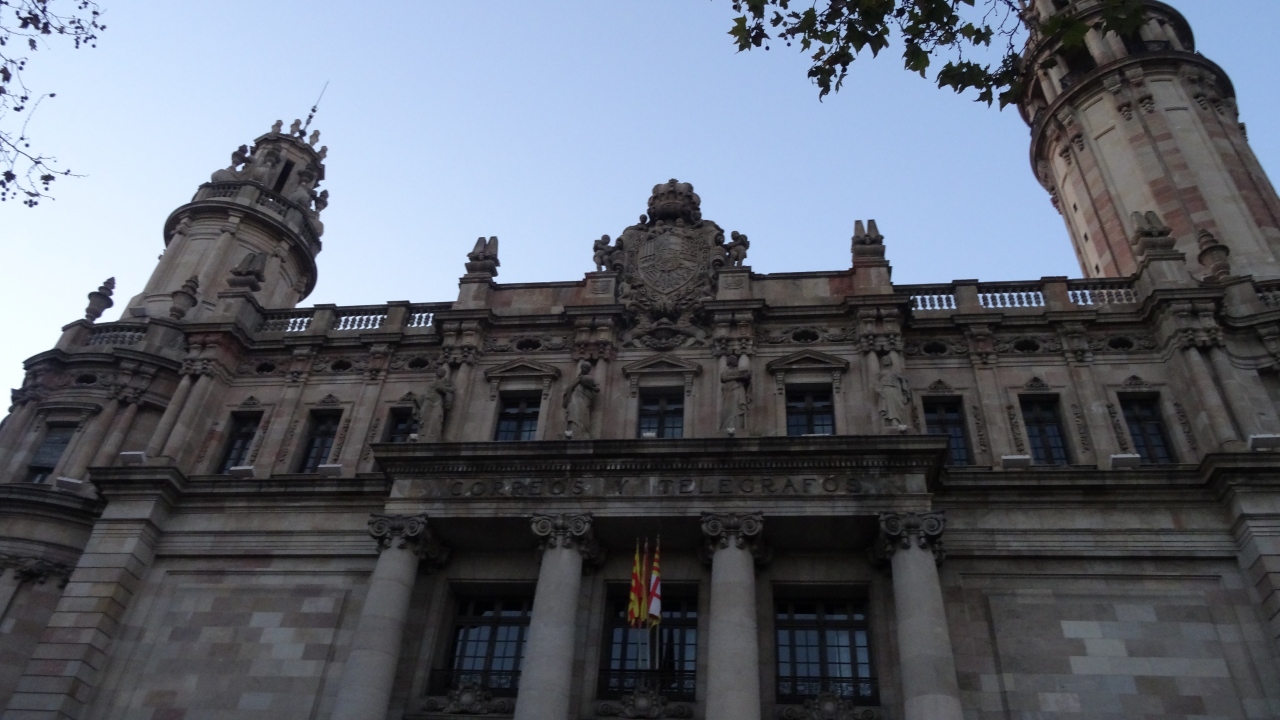 1927年に作られたバルセロナで一番古い郵便局だそうで、現役郵便局ですので、もちろんハガキ・荷物を送れます。土日も開いており、英語も通じる、まさに中央郵便局です、