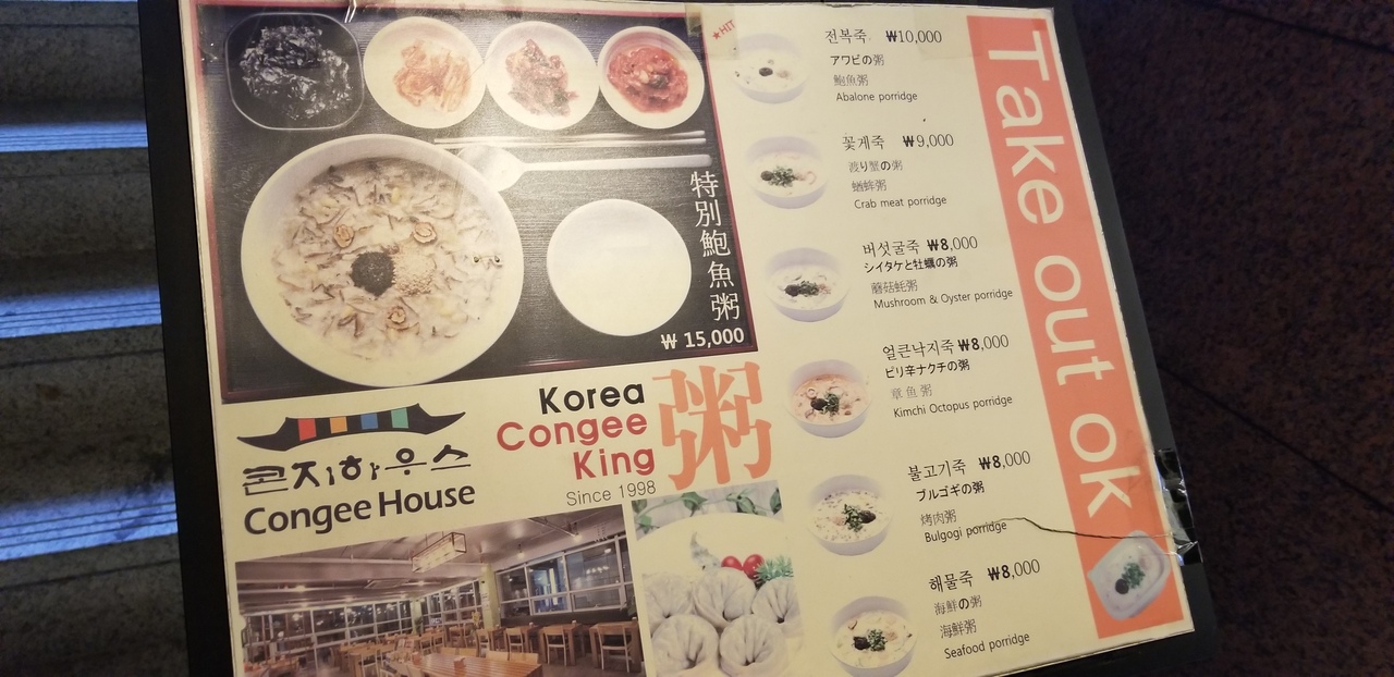 韓国でお粥というとアワビ粥が有名ですが、こちらのコンジハウスの牡蠣とキノコのお粥は絶品です。クリーミーなお粥に牡蠣がたくさん入っています。アワビも美味しいですが1度は牡蠣を試していただきたいです。