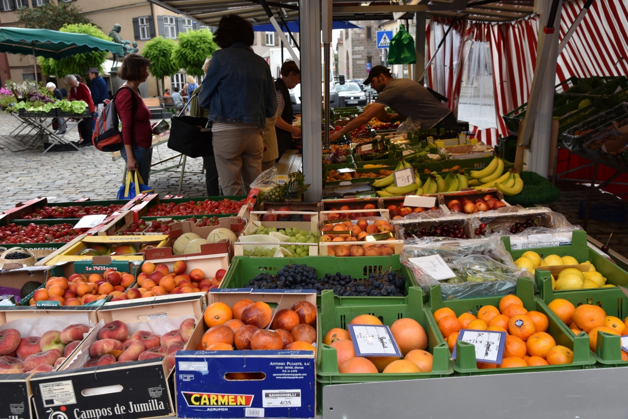 ・マルクト広場は教会前にある広場ですが観光客は少なく地元の人が果物屋さんで買い物をしていました。私はイチゴを買って食べました。