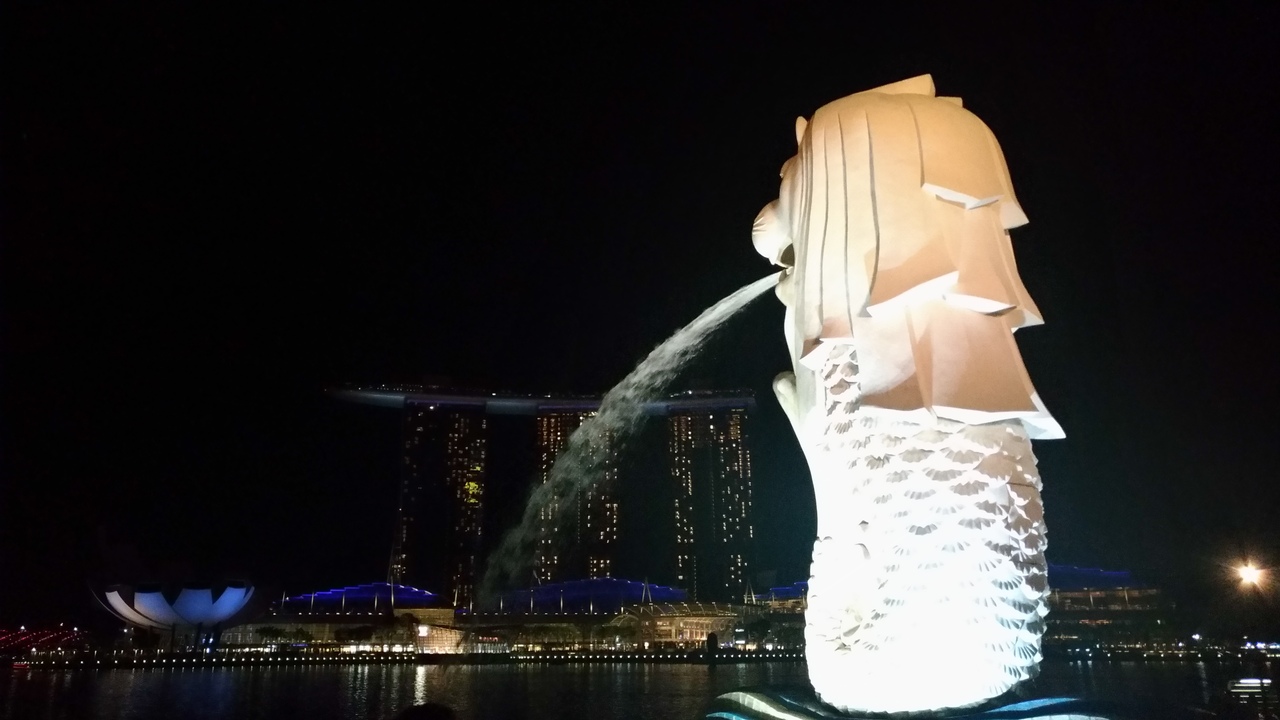 マリーナベイ湾にある世界的に有名なマーライオン。