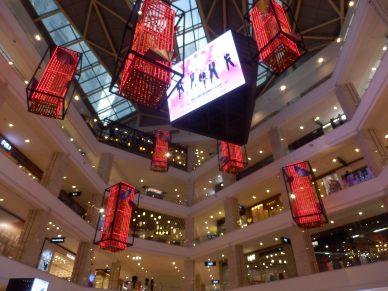 大連駅から西へ10分ほど歩いた場所、地下鉄の青泥窪橋駅のすぐ近くにあるガラス張りの綺麗なオフィスビルの低層階がショッピングモールになっていました。
