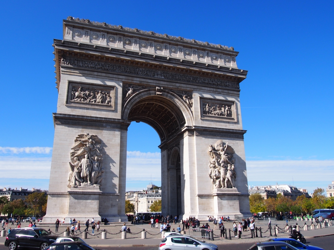 外観だけでもインパクトがありますが、登ってみる景色が凄く良かったです。凱旋門から放射状に道が延びている様子がよく分かります。エッフェル塔やサクレクール寺院まで見えました。望遠レンズがあった方がきれいな写真がとれます。
