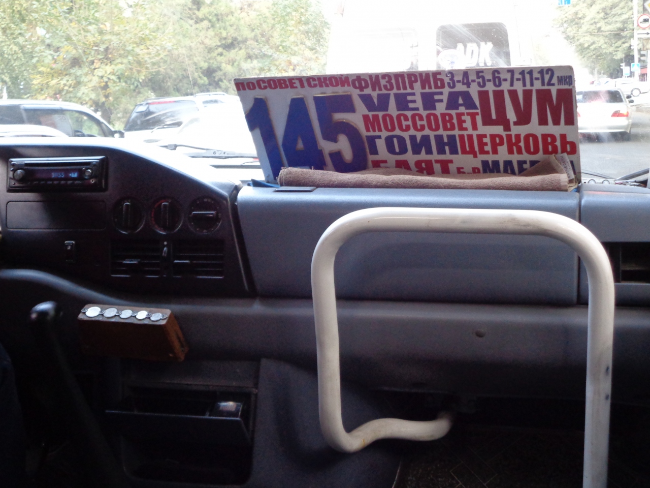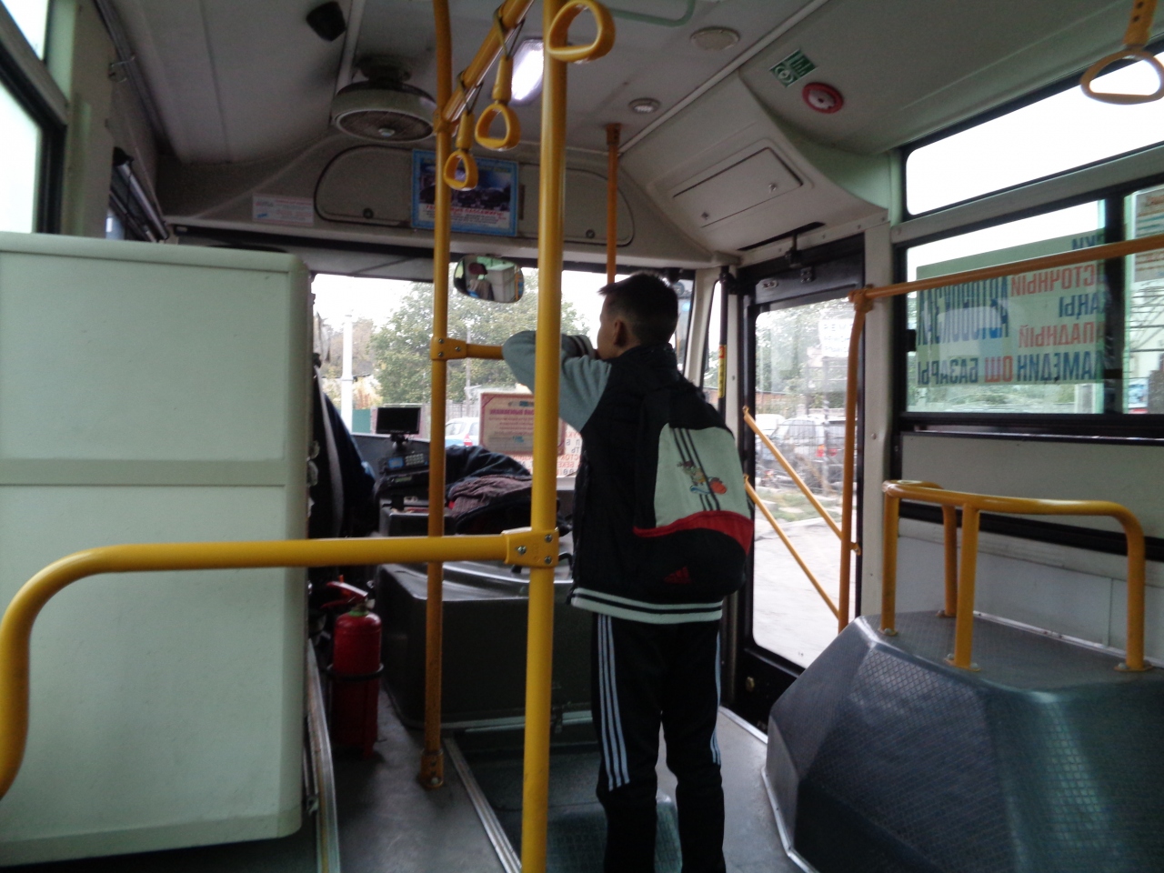 運賃を払うタイミングは、市バスとマルシュルートカで異なるようでした。市バス(8スム)は下車時、マルシュルートカ(10スム)は乗車時です。