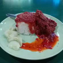 また名前変わった?って感じです。「NASI AIR Klasik Kak Cik」。もちろん理由といきさつはわかりませんが個人店舗ではなくフードコート的な店なので名前はそれほど重要ではないのかもしれません。店の奥の壁には初代店名の入ったメニューが残っています。訪れたのが夜だったのでメインとなるお粥(Nasi Air)の店はすでに閉店。なので普通におかずを選んで食べました。チキンの煮込みをチョイス。ご飯はカップからポンと出したもので冷めており、ややカピカピ気味。5RM。やはり夜に行く店ではないかなと思います。行くなら他のものにした方がよさそうです。